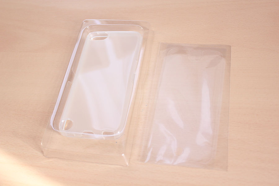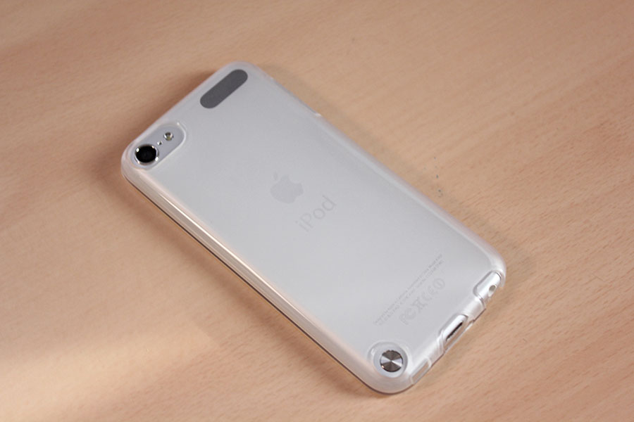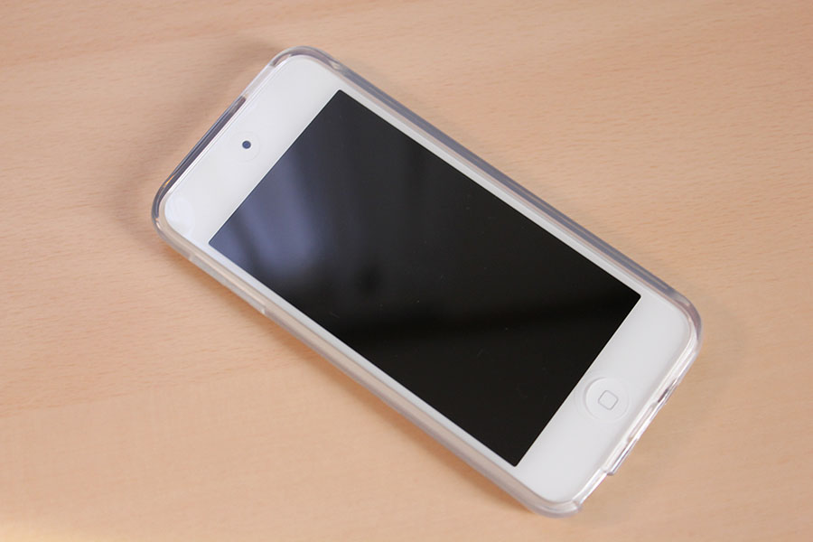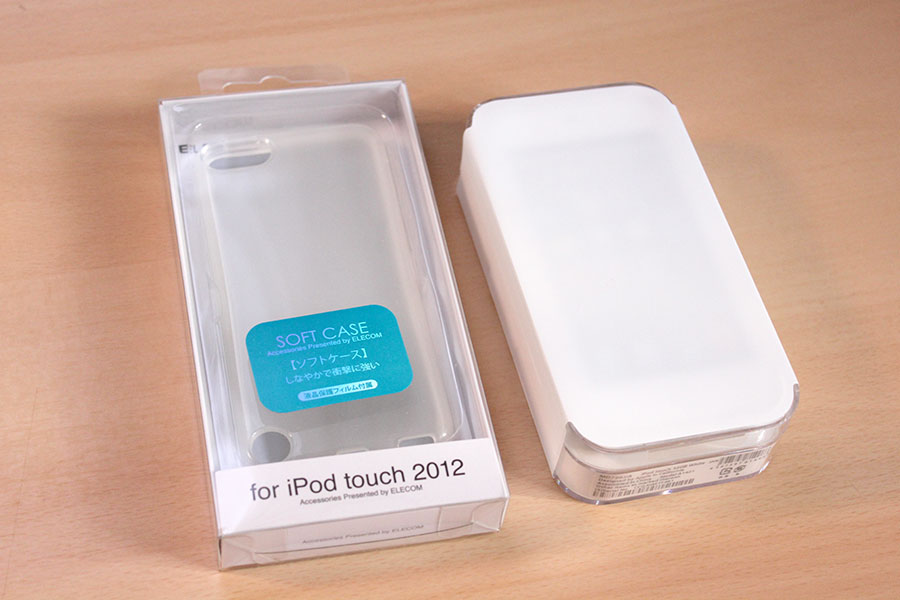 ↓右の白いのがフィルムにくるまれたiPod touch、左のはELECOMのAVA-T12UCCRというTPU(熱可塑性ポリウレタン)製のケース。