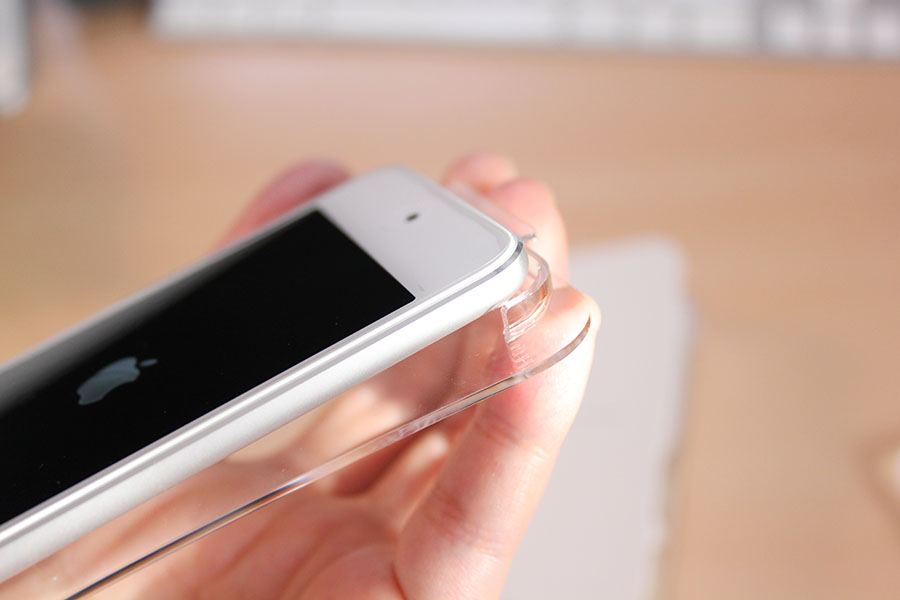 ↓オモテ。滑りにくくなってフチに段差が出来るので持ちやすくなるという点では良い感じ。自分的には傷からの保護と言うより、そっちの効果の方がありがたい。