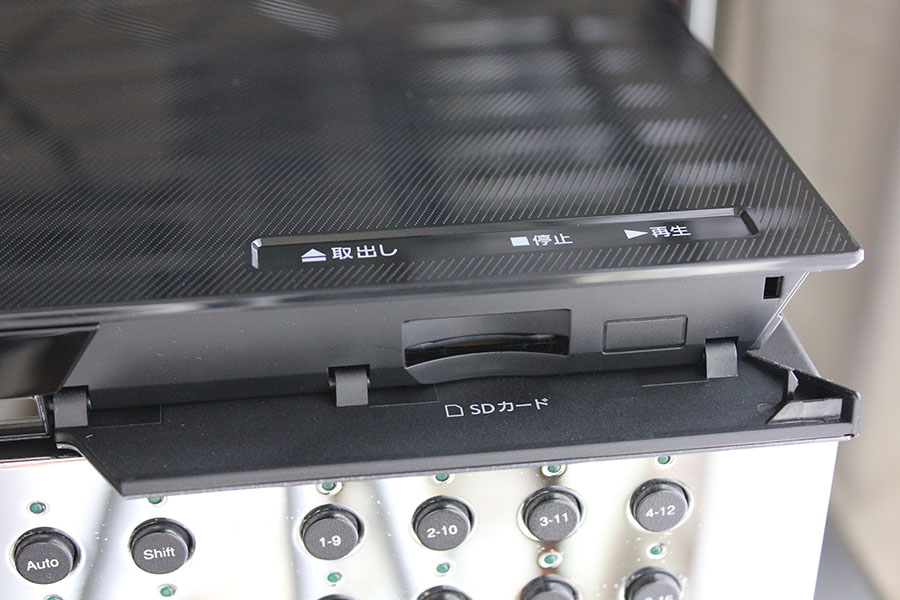 ↓右側パネルを開くとSDカードスロットが。SDカードを差し込むと、本体が軽いのでズルッと奥に動いてしまう。