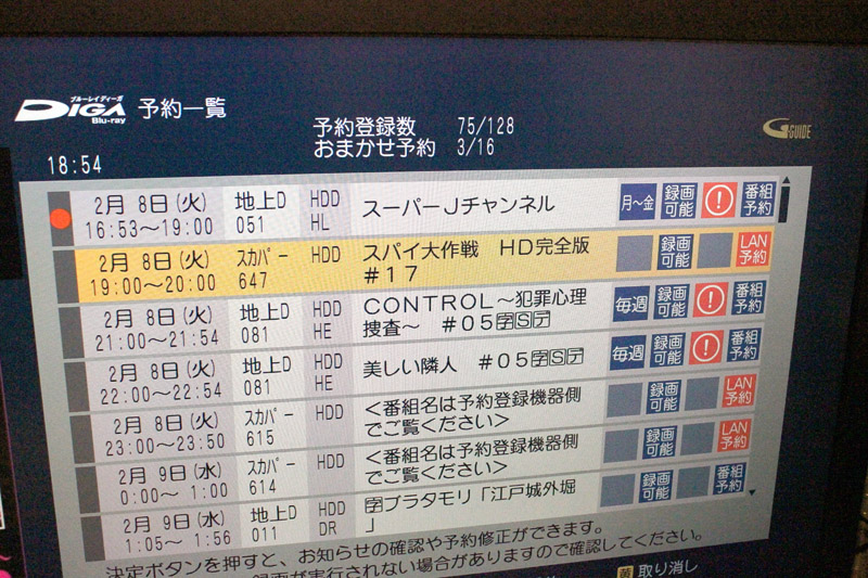 2行目の「スパイ大作戦」#17がバージョンアップ後に入れ直した予約。スバラシイ。