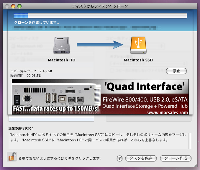 どうせSnow Leopardが届いたらクリーンインストールをする予定なので、クローンで済ます事に。