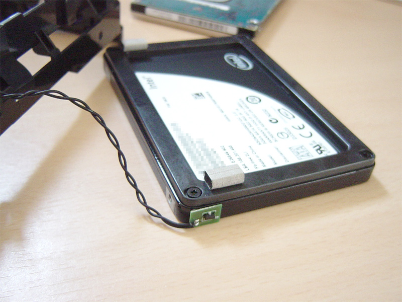 SSDの場合どこが一番熱くなるか分かんないし、とりあえずHDDの時と同じ場所に貼付けてみる。↓