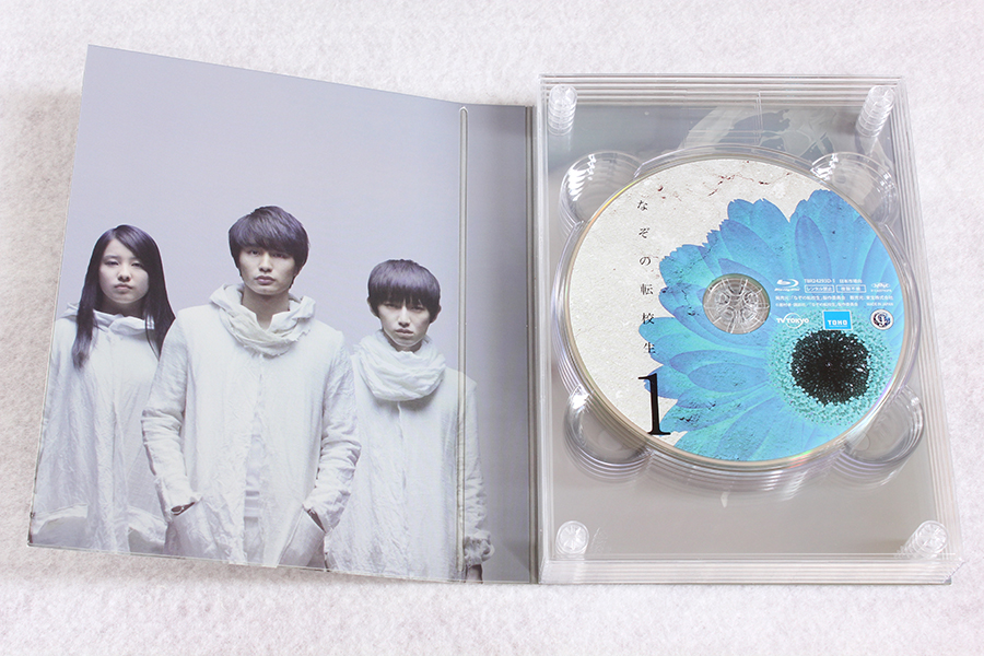 ↓インナーケースを開いたところ。重ねたトレーの端を粘着フィルムで束ねてるタイプのやつですな。各ディスクのレーベルは、作品の世界を表すアイテムのひとつ、花をデザイン。