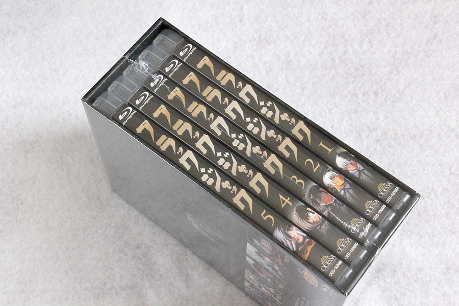 ↓インナージャケ背。ディスク1~4にOVA各3話、ディスク5に劇場版と特典映像集。ブックレットの類は無し。