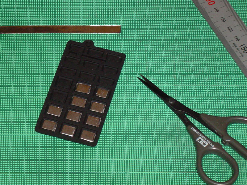 バラバラにしたら、だいたい接点の大きさに合わせて両面テープ付きアルミホイルをカット。