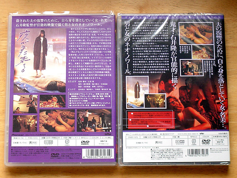 なお、旧盤の「夜がまた来る」では、「DVD用デジタルマスターについて」という東現とQ-TEC担当者のテレシネとマスター作成についてのコメントがあったけど、ニューマスター盤ではそれが削除され、「石井隆監督の世界「俳優」篇」という解説に置き変わっていた。