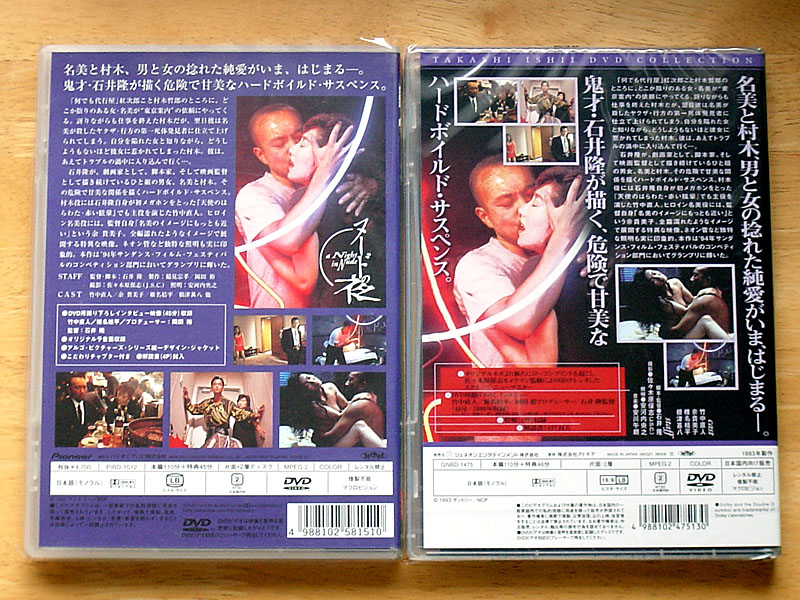 旧盤は「アルゴピクチャーズ シリーズ」としてリリースされていたけども、ニューマスター盤は「石井隆DVDコレクション」としてのリリース。