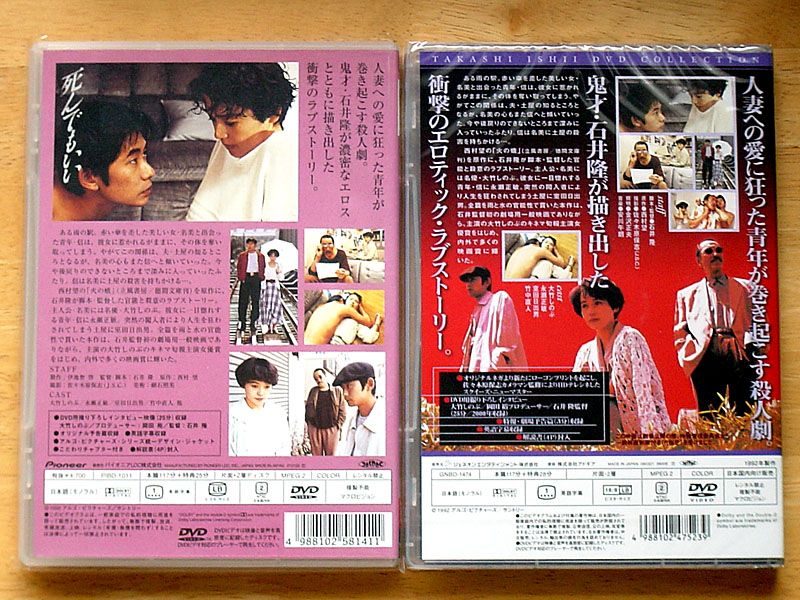 他の「アルゴピクチャーズ シリーズ」同様、ポスターそのままのデザインだった旧盤に対し、ニューマスター盤はコピーなどが整理されていて、中でも「死んでもいい」は、オリジナルポスター柄の大竹しのぶを大写しにしたデザインになり、大きく印象が異なっている。