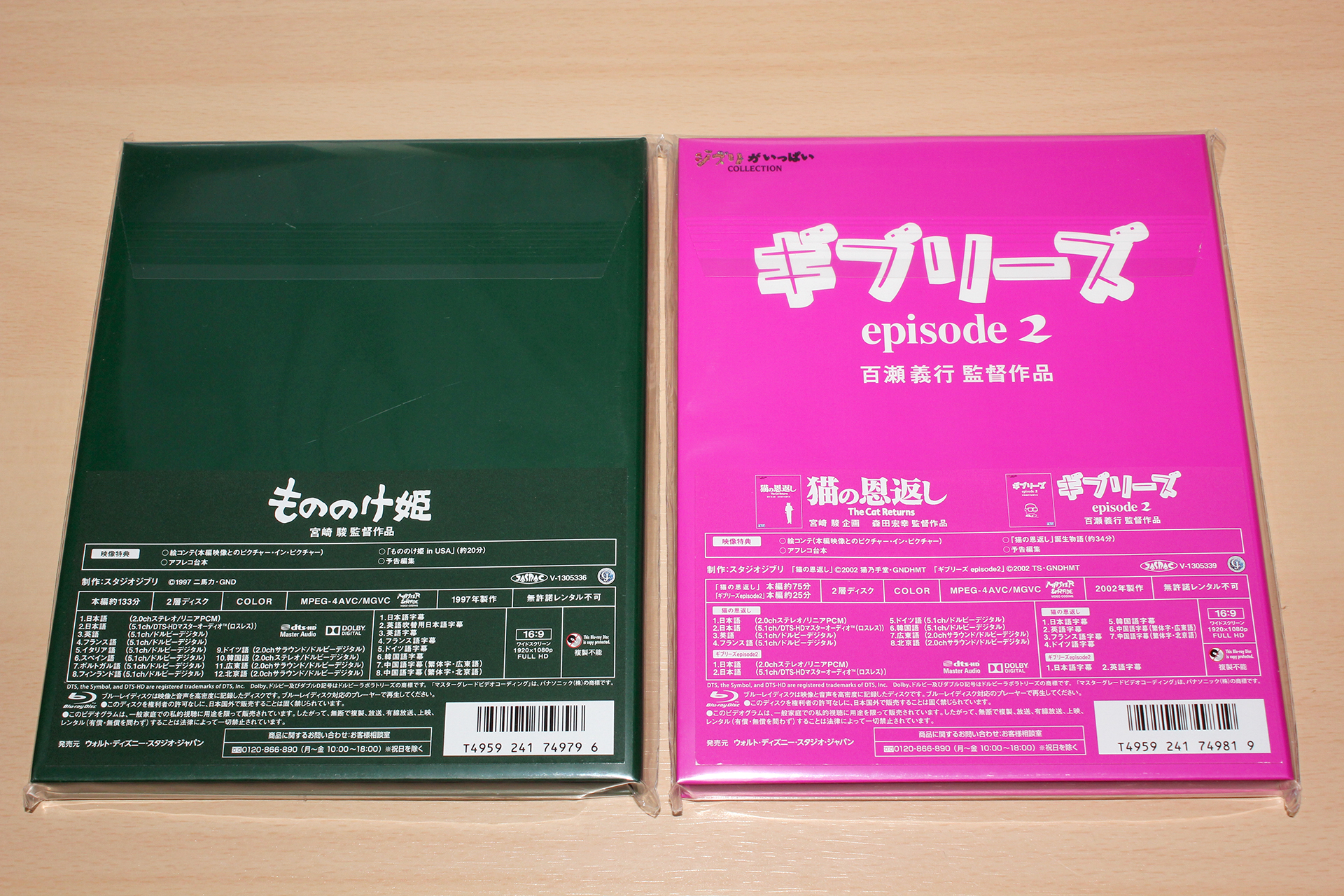 ブルーレイ「もののけ姫」と「猫の恩返し/ギブリーズepisode2」が届いたー♪ので記念写真。※リンクはAmazon