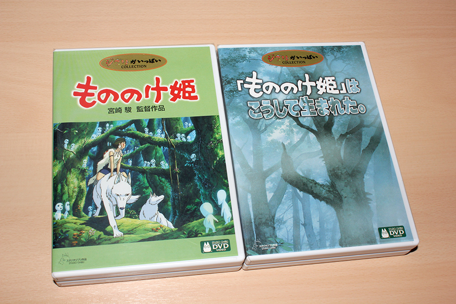 ↓こちらは特典類の確認のため引っ張り出してきた「もののけ姫」と、「「もののけ姫」はこうして生まれた。」のDVD。どちらも3枚組み。「もののけ姫」は本編ディスク、絵コンテディスク、各国語音声を収録したインターナショナル版本編ディスクで3枚。