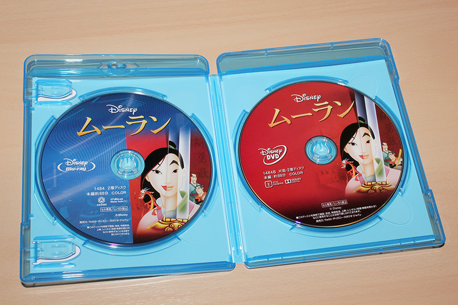 ↓「ムーラン」のレーベル。左がBD、右がDVD。
