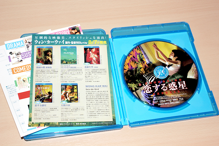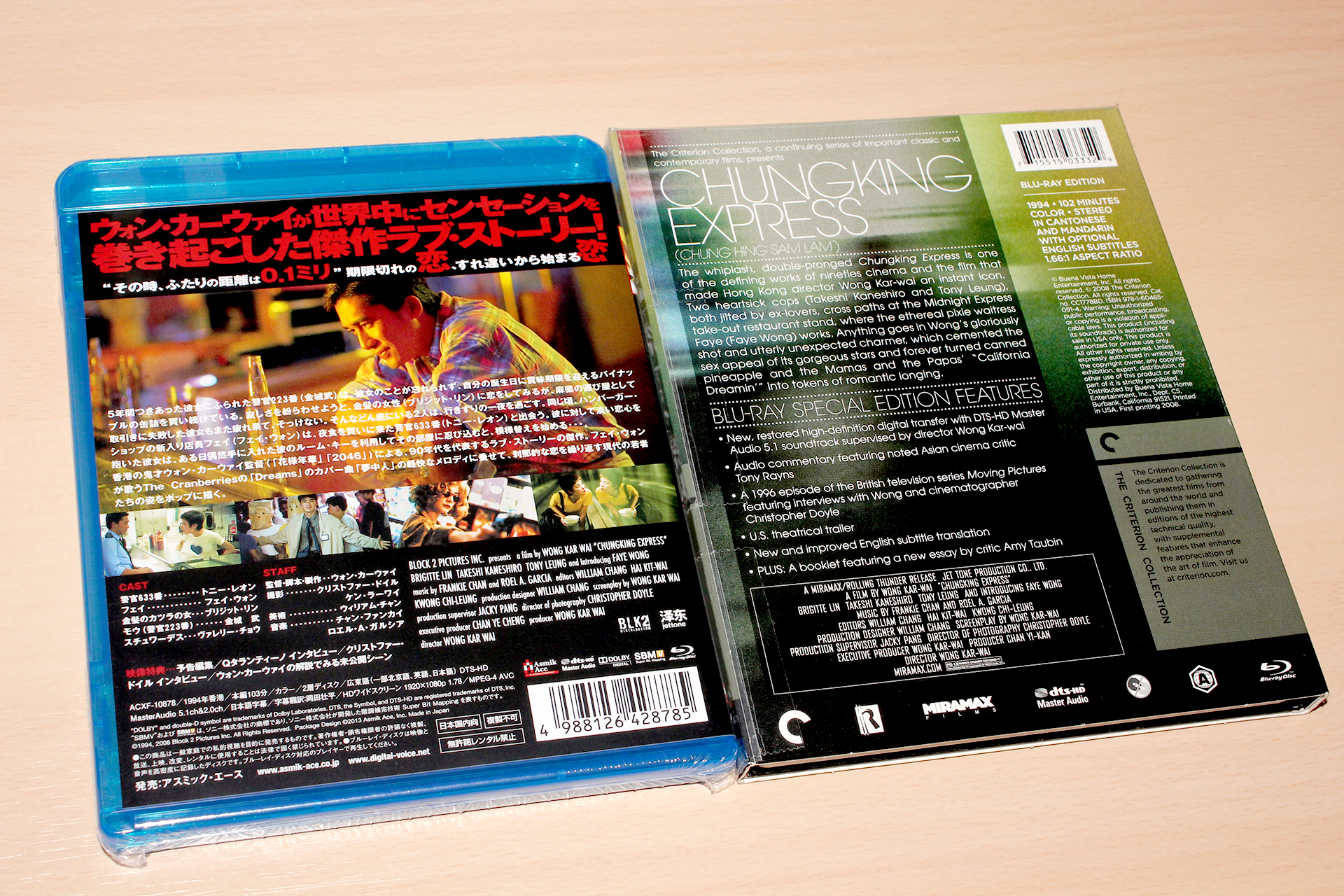 他にもウォン・カーウァイ作品がまとめて出たけども、クオリティの点で一気に全作買いは躊躇われるものがあったので、とりあえず今回発売される中では一番のお気に入りで、クライテリオン盤との画質比較も出来る「恋する惑星」だけ購入。