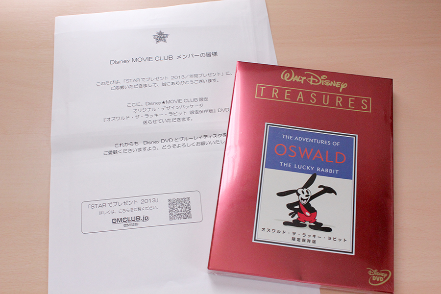 ↓今年度のプレゼントは、「オズワルド・ザ・ラッキーラビット限定保存版」DVD。オリジナル・デザインパッケージ。