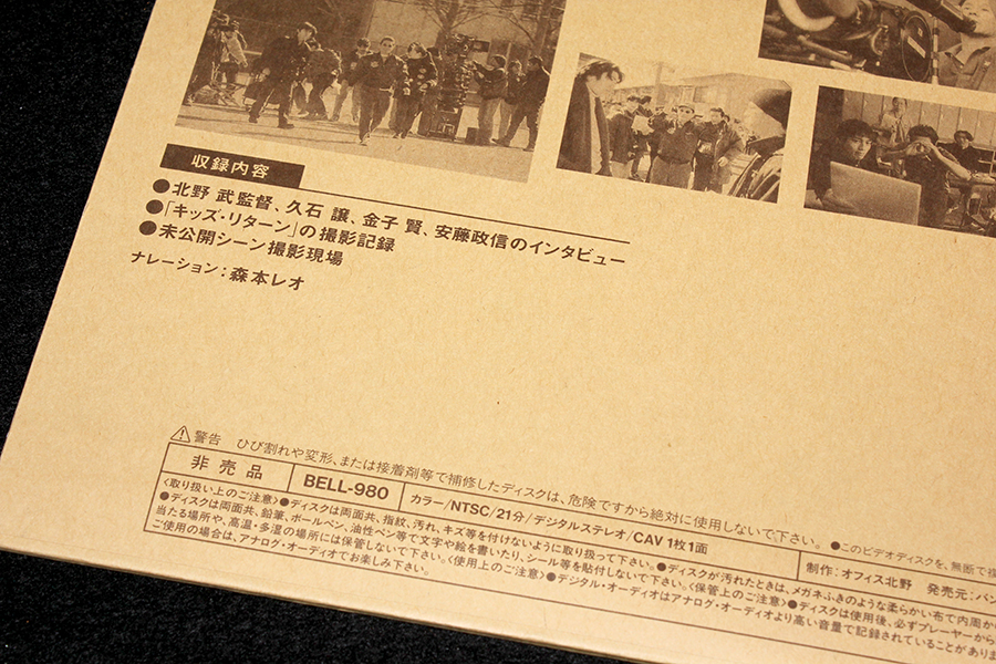 北野作品はLD-BOXの時に収録されてたらしい「ソナチネ」のメイキングとか、DVD-BOXのときの特典ディスクとか、最初に出た単品を買っちゃった人は色々と損をする感じだったから、これから出るであろう他作品のBDには是非過去の特典映像を収録して欲しいなぁ。