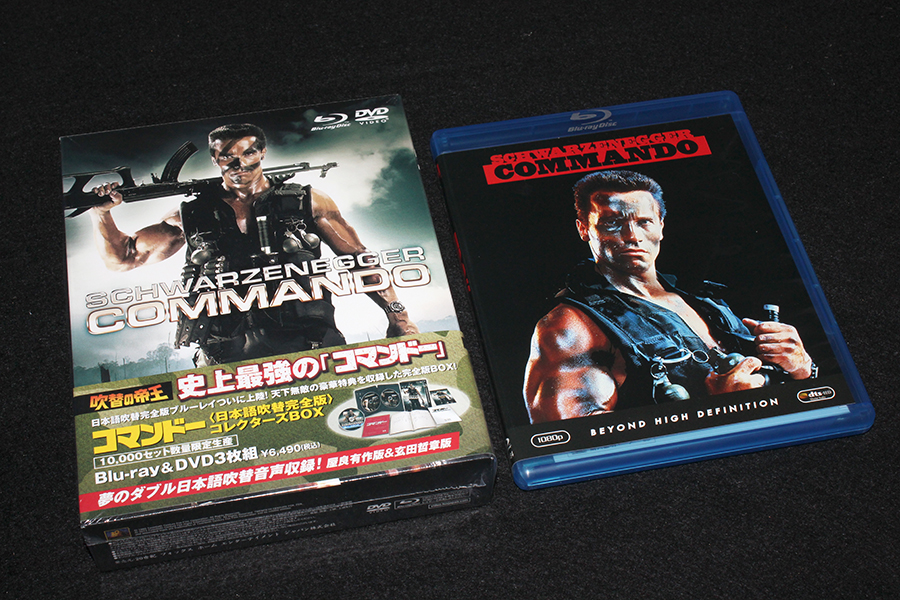 玄田哲章と屋良有作の日本語吹替を収録したブルーレイ「コマンドー<日本語吹替完全版>コレクターズBOX (10,000セット数量限定生産)Blu-ray&DVD3枚組」が届いたー♪ので記念写真。※リンクはAmazon