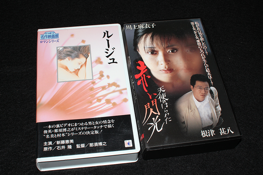 ↓「名美と村木」シリーズという事でコレも。「ルージュ」の廉価VHSと、いまだDVDされる気配のない「天使のはらわた 赤い閃光」の中古VHS。