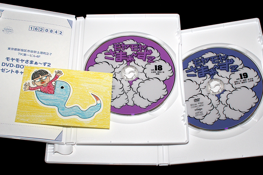 深夜時代の最終回となる落合&江古田回と、「ショウ君のペラ1」を収録したディスクにくわえ、「モヤさまステッカー」がもらえるとのこと。