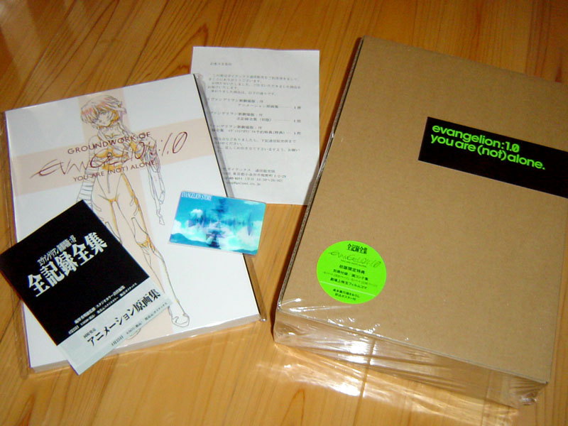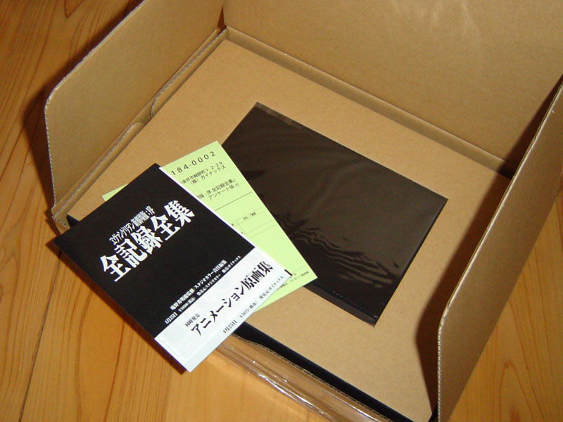 全記録全集とEVAストア特典のラミエルレンチキュラーカード、原画集、納品書というかペラ、DVDにも入ってたチラシ。