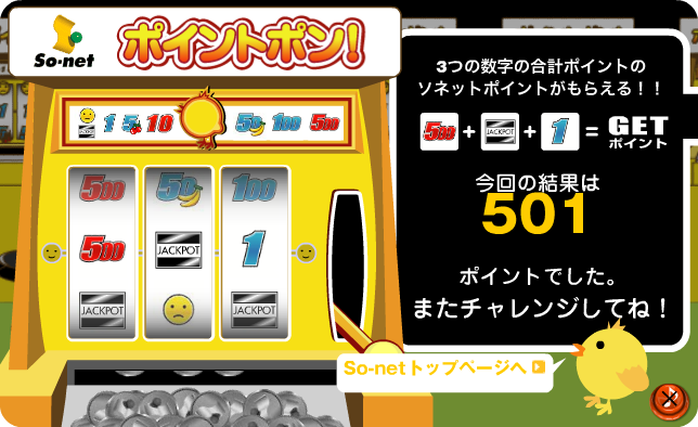 「So-netポイントポン!」で501ポイントが当たった♪