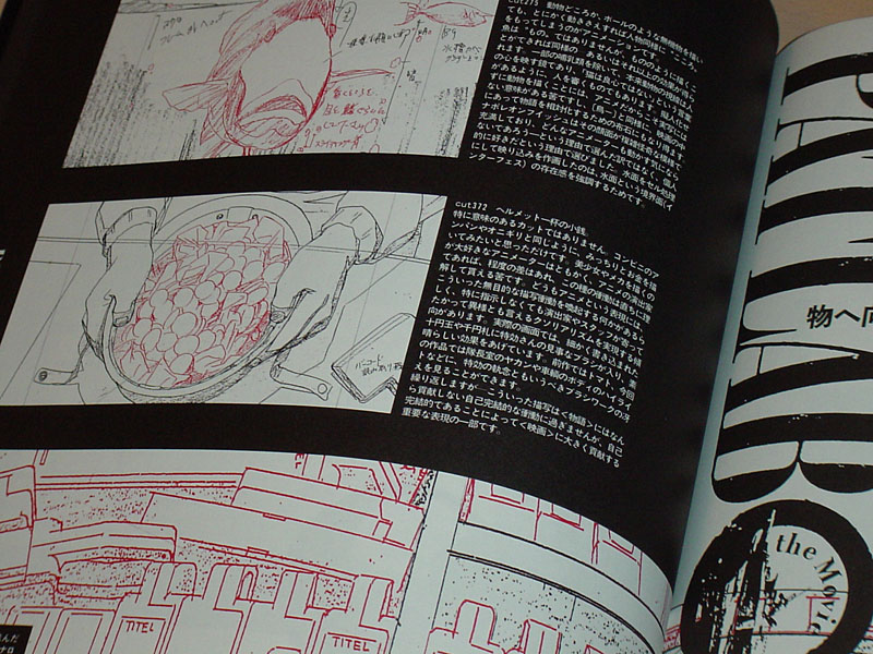 レイアウトを資料や絵として掲載するだけでなく、各カットに押井自身の解説が。