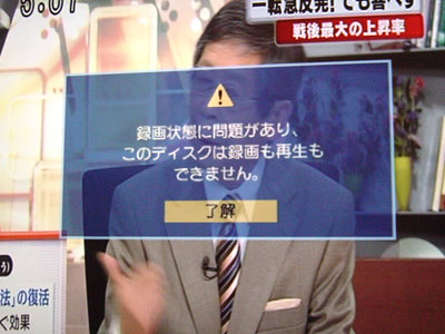 「録画状態に問題があり、このディスクは録画も再生も出来ません。」
