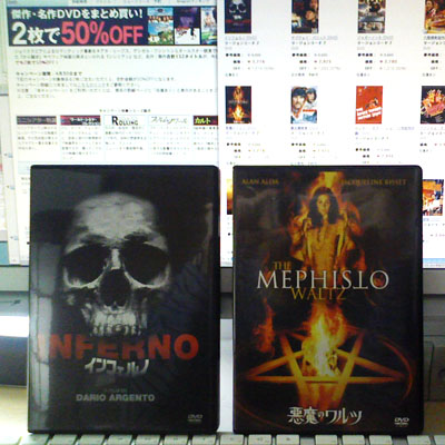 友達と電話でアルジェント話をした流れで、「「インフェルノ」のDVDが30%offのさらに半額だよ。あとなんか1枚買えばだけど。」なんて教えてあげたら、「おまい1枚買え」なんてぬかされ、おいらがその1枚を買うハメに。