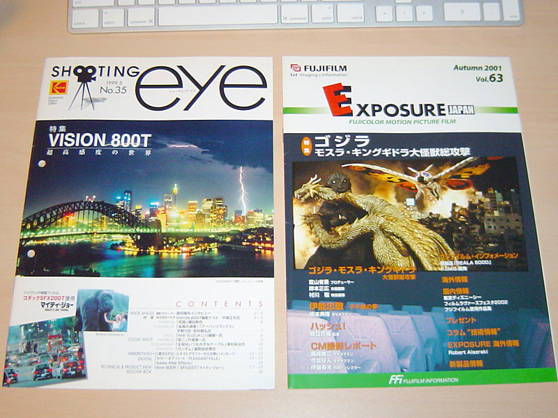 これは、シネフィルムを取寄せたりするとラボの人が持ってきてくれてたCMや映画関係の情報誌で、フジフィルムの「EXPOSURE JAPAN」と、コダックの「SHOOTING EYE」。