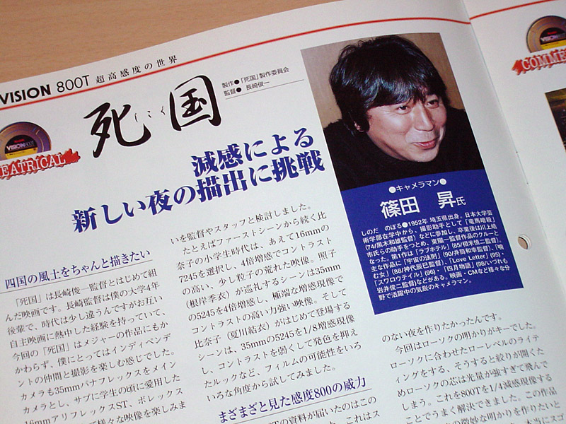 こちらは、今は亡き篠田昇氏が「死国」で新製品のフィルムをどう使ったかなどについて語っているインタビュー記事。