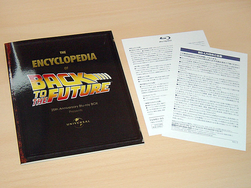 ↓ブックレットの「THE ENCYCLOPEDIA OF BACK TO THE FUTURE」など紙物。こちらも期間限定生産仕様の在庫が終わったら付属しなくなる模様。