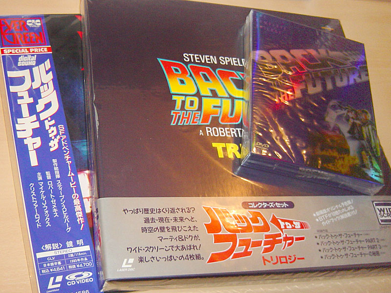 ↓歴代の「BTTF」ディスクソフト。左から廉価版LD(それでも4700円)、LD-BOX(15000円)、一番最初に出たDVD-BOX(9800円)。