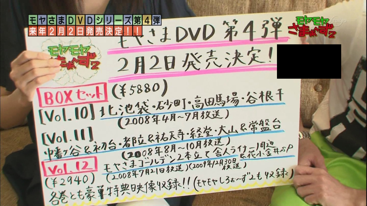 前回発売の「モヤさま」レギュラー放送分は「東京タワー周辺」の回までだったから、今回のは「北池袋」から「谷根千」か二度目の「幡ヶ谷・初台」あたりだろうかね?