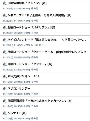 ↓ソニーBDレコーダ用の「Chan-Toru」の録画リスト画面。