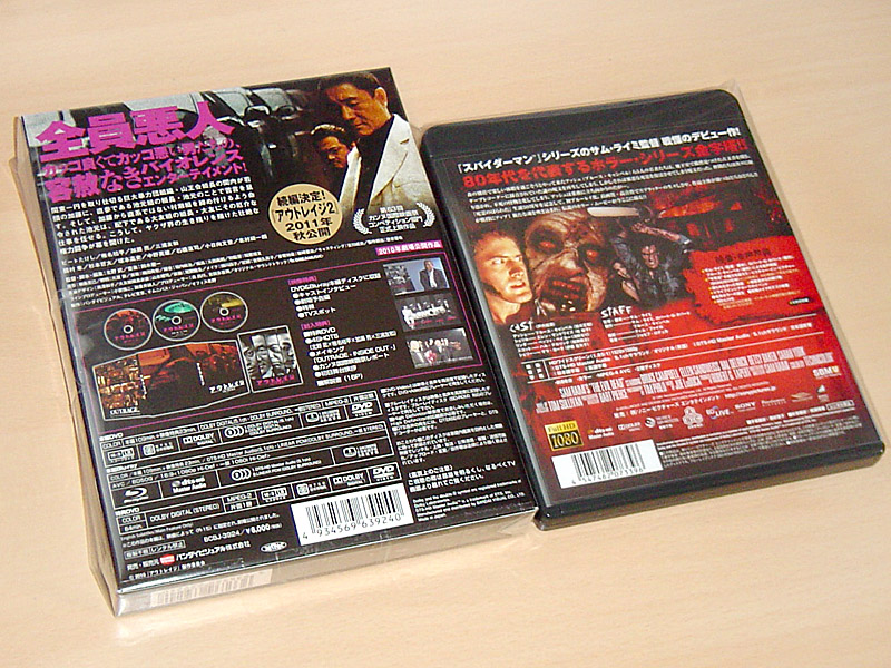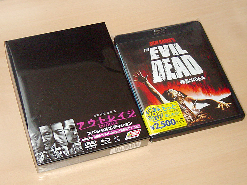 ブルーレイ「アウトレイジ スペシャルエディション」「死霊のはらわた」が届いたー♪ので記念写真。※リンクはAmazon