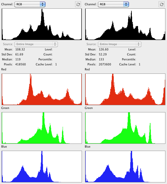 ↓ヒストグラム。(左:DVD/右:地デジ)