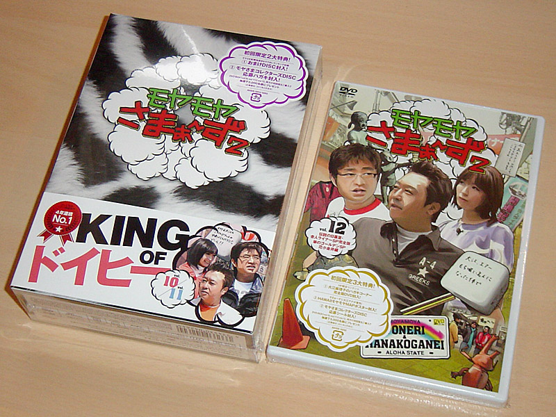 「モヤモヤさまぁ~ず2 DVD-BOX Vol.10&Vol.11」「 Vol.12 伝説の日暮里・舎人ライナーSP完全版&華のゴールデンSP花小金井編」が届いたー♪ので記念写真。※リンクはAmazon