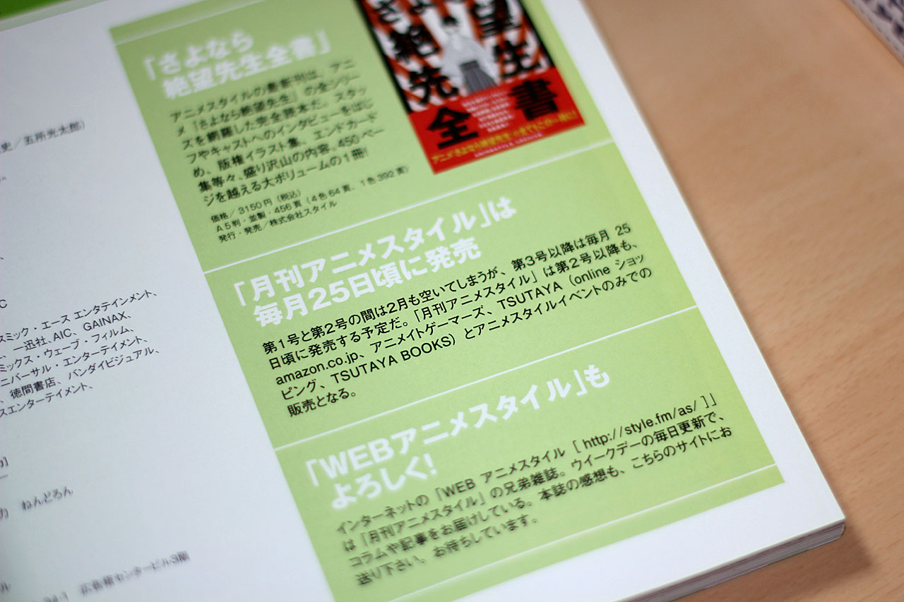 ・「月刊アニメスタイル」第1号の予約受付が開始されていた