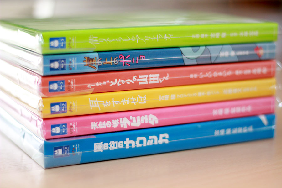 ↓これまでのジブリ長編劇場映画BD。大分カラフルになってきてて、今後全作が揃うとなかなかキレイでイイかもって気になってきた。