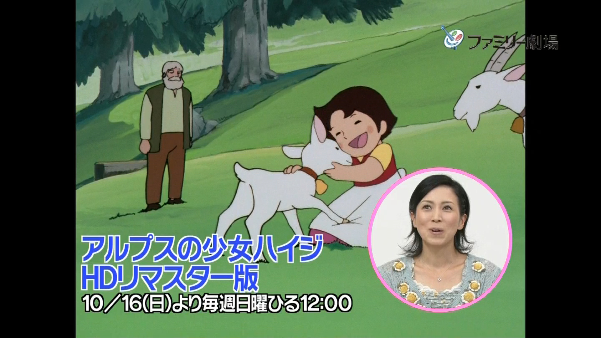 「アルプスの少女ハイジ HDリマスター版」はCSファミリー劇場で明日10/16スタート。