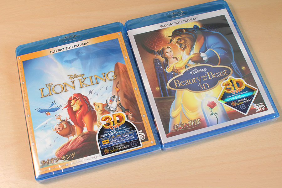 ディズニーの「ライオン・キング 3Dセット」と「美女と野獣 3Dセット」が届いたー♪ので記念写真。※リンクはAmazon