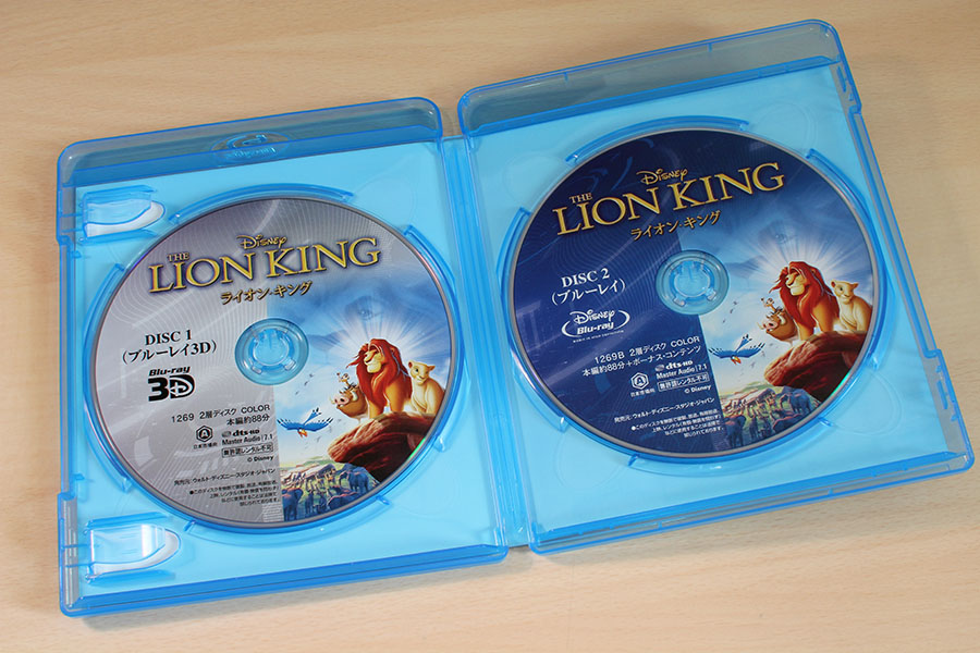 ↓「ライオン・キング」のケースを開いたところ。グレーがBD3D、青が普通のBD。特典類は普通のBDにのみ収録。