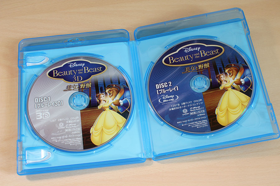 ↓こちらは「美女と野獣」。BD3Dと普通のBD。セットになっているBDは既発売「美女と野獣 ダイヤモンド・コレクション」のディスク1と同仕様で、当然「ダイヤモンド〜」のディスク2に入ってた特典類はすべてなし。3Dは劇場公開版のみ収録。