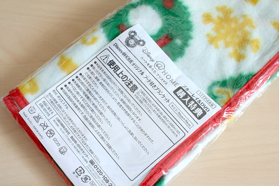 ↓この冬発売となる新譜BD/DVDの先着購入特典「Disney@HOME オリジナル フード付きブランケット」。タダなんで文句は言わないけど、薄くて余裕で光が透ける(笑)