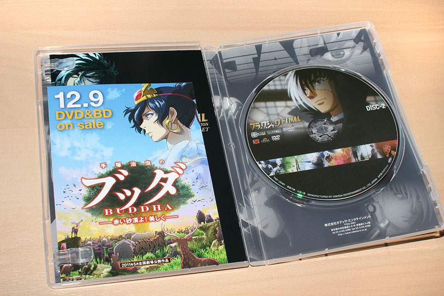 ↓開けたところ。ブックレットとリーフレット。リーフレットには「ブッダ」と「ブラック・ジャック FINAL」のお知らせ。