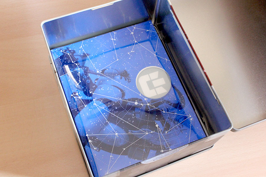 ↓BOXウラ。下の仕様シールには商品名や仕様などが書かれてるけども、缶にはタイトルなどは何も無し。オンライン専用商品でもないと、こういうデザインは許されにくそうな。