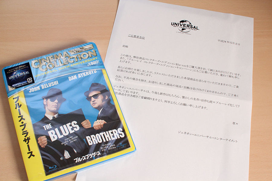 「アポロ13」と「スカーフェイス」も迷ったけど、タダで貰うなら今後仕様を変えて出されても悲しくならないやつにしようということで、結局「ブルース・ブラザース」に。