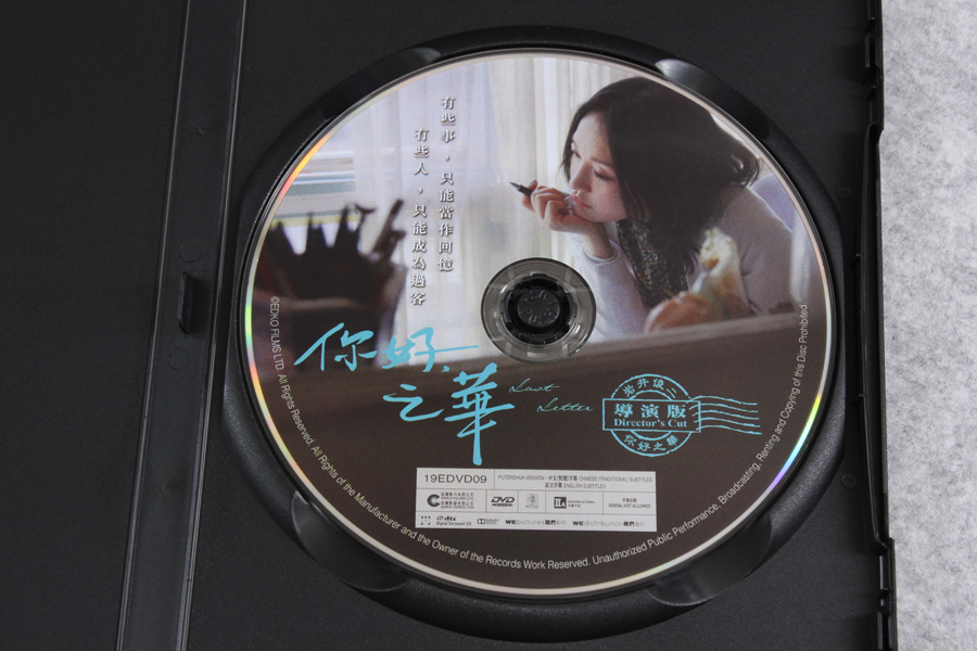 昨年11月に中国・北米・オーストラリア・ニュージーランド・香港・シンガポールで公開されたという岩井俊二監督の中国版「ラストレター」、「你好,之華(チィファの手紙) / Last Letter」香港盤DVDが(1か月くらい前に)届いたので記念写真。