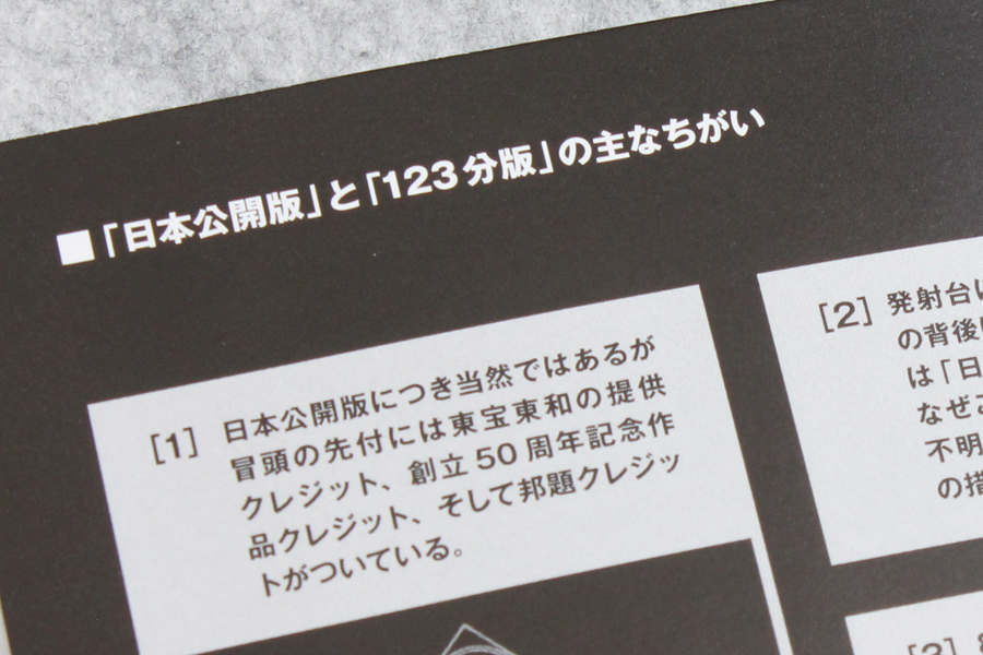 また、画郭も既発売盤とは異なっていて、比較をした範囲では、日本公開版は既発売盤よりもトリム量が少なく、天地左右とも日本公開版の方が広く見えていた。
