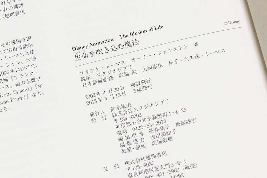 ↓最後に、本。「ディズニーアニメーション 生命を吹き込む魔法 ― The Illusion of Life ―」。