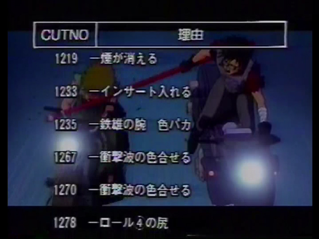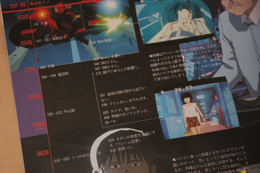 ちなみに、リテイクカットNo.とリテイク内容については、こちらのムック本「アニメビデオ’89カタログ」の方が詳しくて、担当アニメーターの名前まで記載。