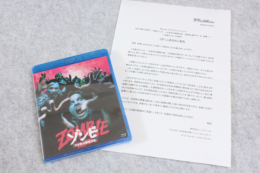 クラウドファンディング「ゾンビ ─日本初公開復元版─」ブルーレイが届いたので記念写真。